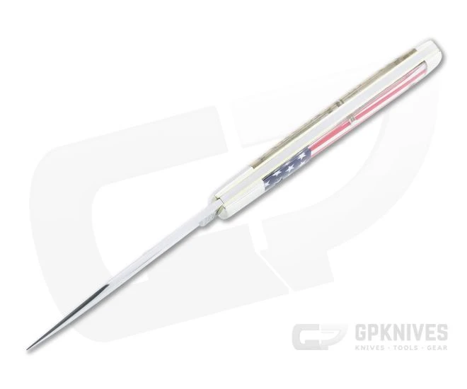 From Great Eastern Cutlery, the Tidioute #94 Liberty is a classic single blade jack knife with brass liner and pin construction, polished bolsters and patriotic American Flag graphic acrylic covers. The blade is satin finished 1095 carbon steel in a clip point profile.