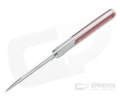 Inspired by Jared Oeser’s custom Native, French custom knife maker Sacha Thiel created his first slip joint, the Birdy, elaborating on Oeser’s design. The sleek, stylish lines of the handle look and feel great, and the modified Wharncliffe blade gives the knife an aggressive appearance and functional performance. The Viper Hug is a high quality Italian production of this custom design. This version comes with a satin finished Bohler M390 blade, single titanium bolster with integral liners and red G10 covers.