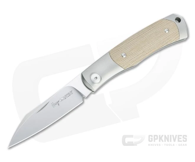 Inspired by Jared Oeser’s custom Native, French custom knife maker Sacha Thiel created his first slip joint, the Birdy, elaborating on Oeser’s design. The sleek, stylish lines of the handle look and feel great, and the modified Wharncliffe blade gives the knife an aggressive appearance and functional performance. The Viper Hug is a high quality Italian production of this custom design. This version comes with a satin finished Bohler M390 blade, two titanium bolsters with integral liners and natural canvas Micarta covers.