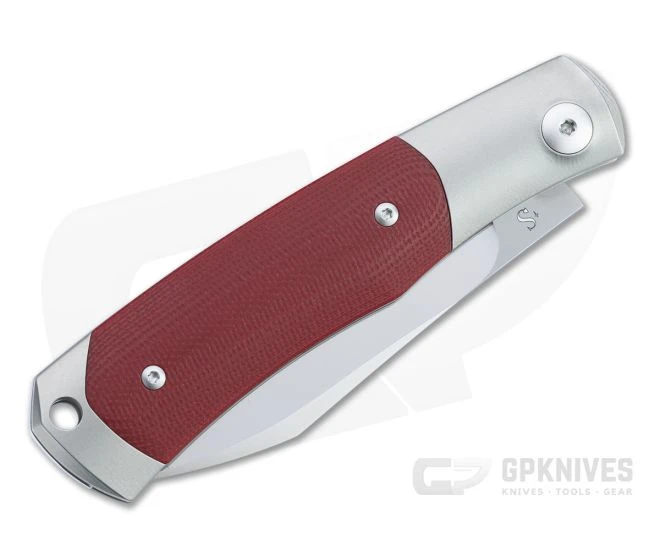 Inspired by Jared Oeser’s custom Native, French custom knife maker Sacha Thiel created his first slip joint, the Birdy, elaborating on Oeser’s design. The sleek, stylish lines of the handle look and feel great, and the modified Wharncliffe blade gives the knife an aggressive appearance and functional performance. The Viper Hug is a high quality Italian production of this custom design. This version comes with a satin finished Bohler M390 blade, two titanium bolsters with integral liners and red G10 covers.