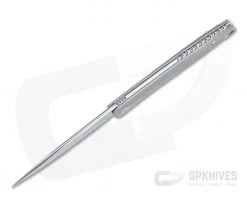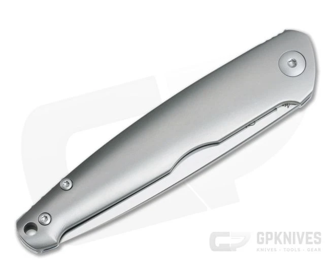 Handle: Solid titanium handle slabs have been contoured to deliver a highly comfortable in-hand feel and allows for a thinner, liner-less construction. Subtle finger grooves and a pinkie hook deliver a solid grip while still having elegant, sweeping lines. The back spring is strong for security while still being smooth to operate. A generous hole is provided for lanyard attachment.